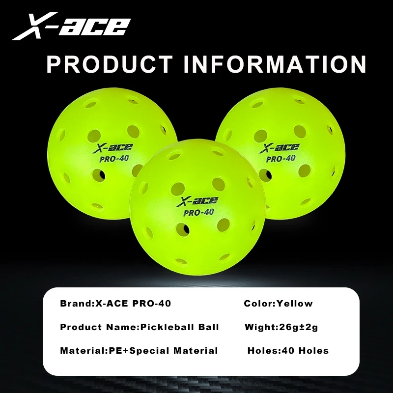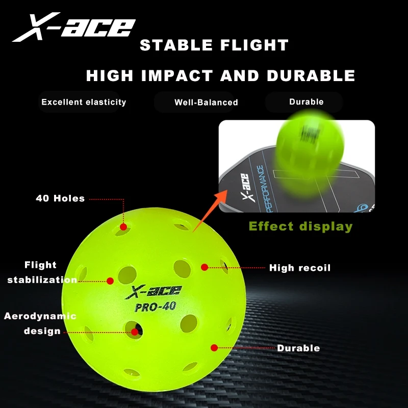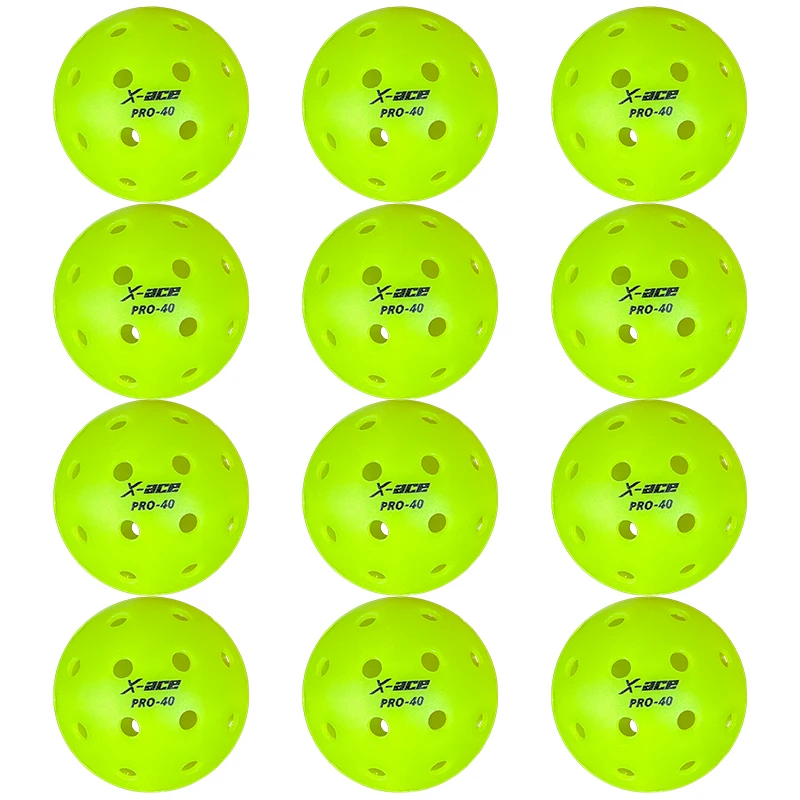 X-ace Pro-40 Pickleball Balls, 12/24Pcs, High Visibility Green, 40 Holes Outdoor Indoor Training Pickle Ball, High Bounce
